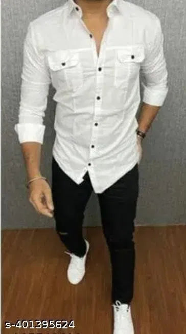 Men Cotton Blend Double Pocket Full Sleeves Shirt Pack of 2